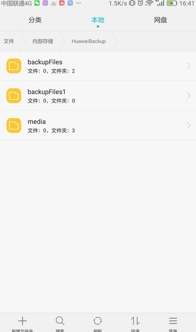 备份结束后,本次备份数据存储在“SD卡/HuaweiBackup”中(以选择备份位置存储为依据)如下所示