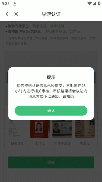 2、填写姓名与联系方式,并按要求上传相关证件图片后点击提交。