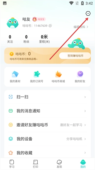 2、在个人中心页面,点击右上角的设置按钮,进入【设置】界面。