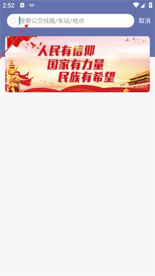 4、进入搜索页面,可在顶部的【搜索公交线路/车站/地点】栏中输入信息,查找对应的公交路线或站点信息。