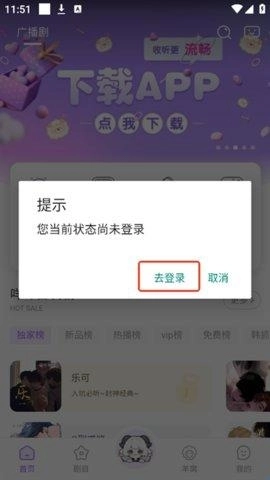 2、点击“去登录”。