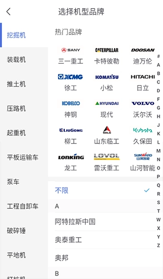 4、丰富的个人用车资源:超过60万台的托运设备,来自三一、卡特彼勒、小松、日立、神钢等知名品牌。