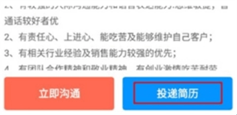 2、然后我们在该页面下面就能看到“投递简历”,点击它。