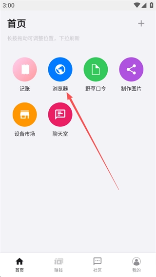 2、添加你需要的功能到首页,以浏览器功能为例,点击浏览器