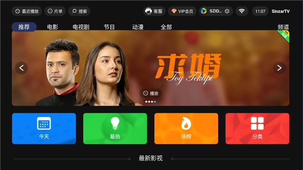 sinzarTV电视版是一款专为新疆本土地区打造的电视端影视剧聚合平台软件。该软件为用户提供新疆本土流行MV、精彩综艺节目、各类访谈节目,同时涵盖热门影视剧内容与新疆本地频道节目,所有内容均可在软件内免费观看。有需要的用户可在本站下载使用。