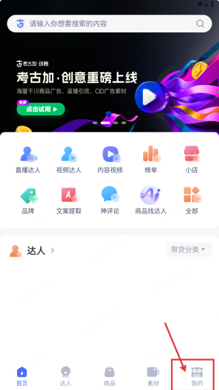 1、打开内容创作应用,点击底部我的选项,进入个人中心页面。