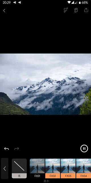 为了让画面更有意境,比如想营造“山中细雨,润物无声”的氛围,我们可以在“覆层”选项里选择“细雨”特效,再通过调整强度来把控效果的明显程度,防止特效过于突出而干扰主体。