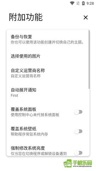 5、在附加功能板块中,用户可自定义设置,开启覆盖系统面板、覆盖系统壁纸、保持自动亮度等功能。