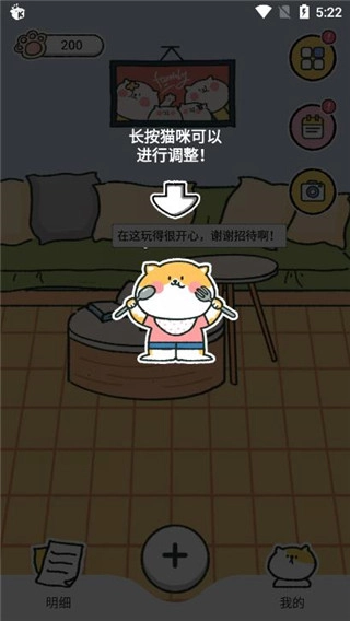 3、长按猫咪可以调整位置,支持左右滑动