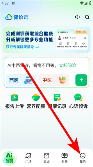 1、启动健诊云应用,点击底部导航栏的“我的”选项,进入个人中心页面。