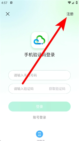 3、在登录页面,点击右上角的注册,进入注册页面。