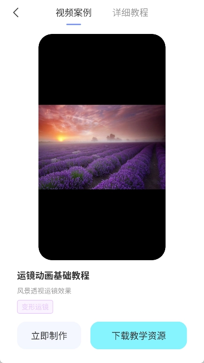 3、风景图片编辑:通过移动镜头节点位置,瞬间将风景图片转变为航拍运镜视频,带来全新视觉体验。
