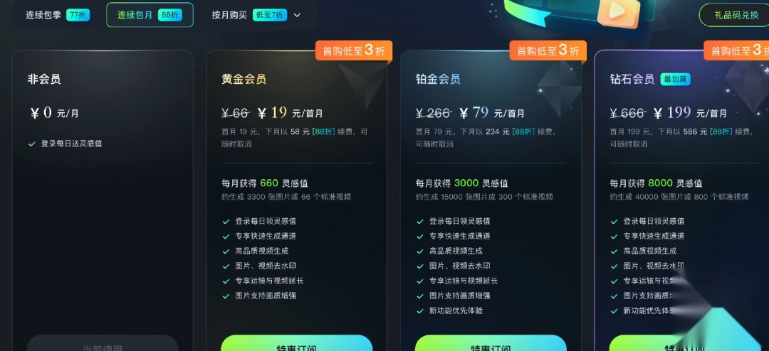 我们可能不时对各灵感值服务、功能、收费方案及用户权益等进行更新、优化,最终您获得的灵感值额度以相关的产品服务官传及支付页面向您展示的为准。