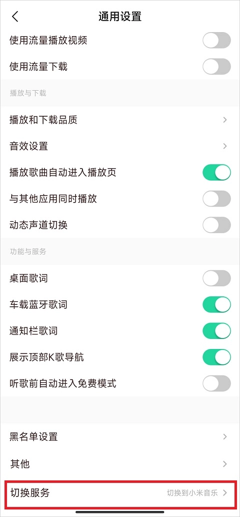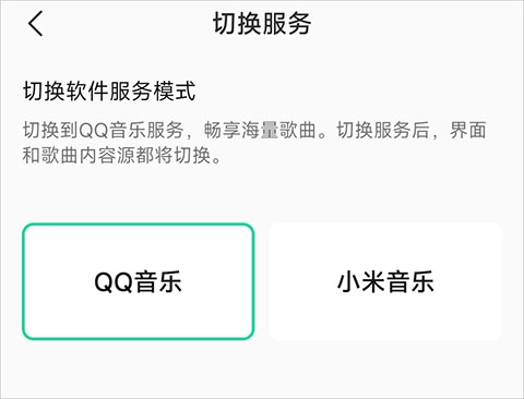 1、双端曲库:一键切换小米与腾讯曲库。