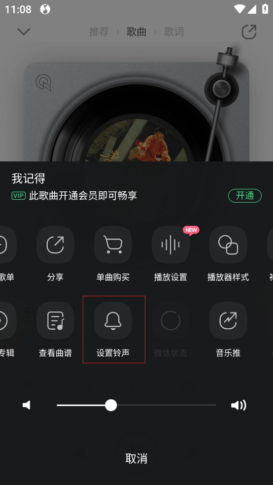 1.打开需要设置为铃声的音乐详情页。