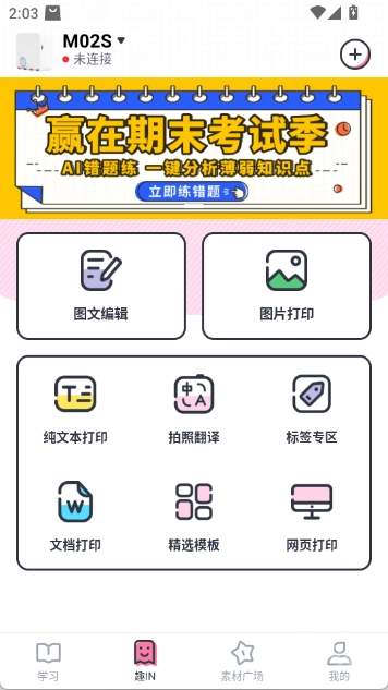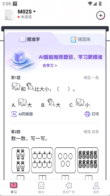 4.【错题打印】学生无需手抄错题,拍照打印后粘贴到笔记本,节省时间提高效率。