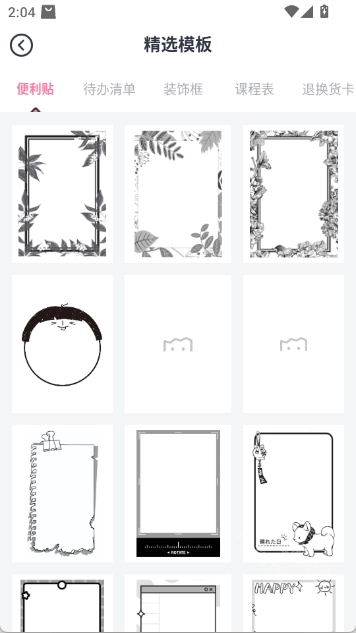 2.【精选模板】提供多样的便利贴、待办清单、课程表和装饰框模板,让生活有序且有趣。