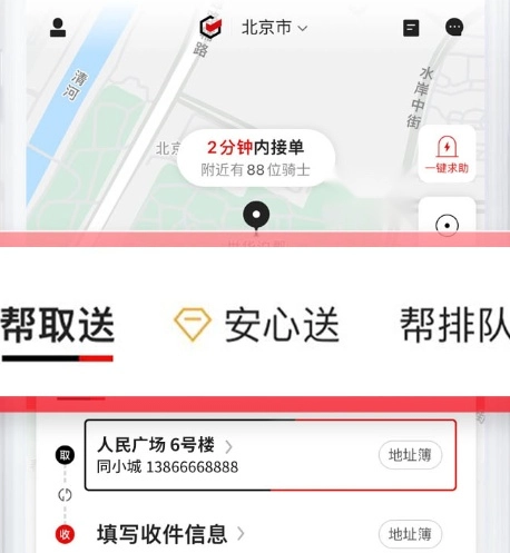 1. 打开顺丰同城急送的首页,点击“帮我送”选项,确认好自己当前的位置和收件人的地址。