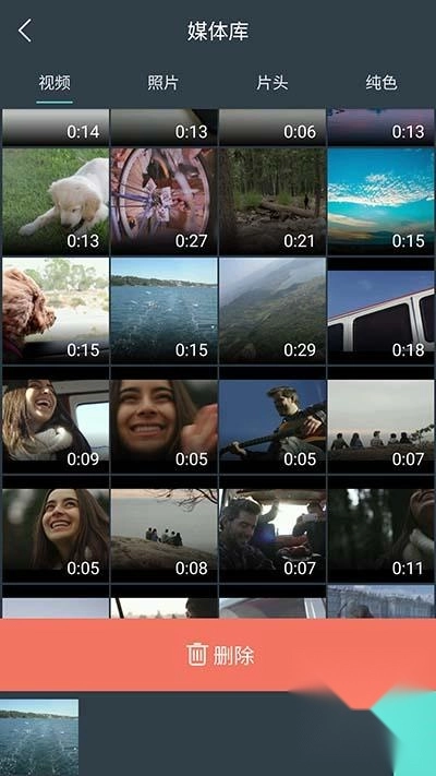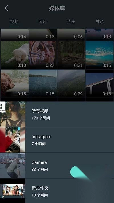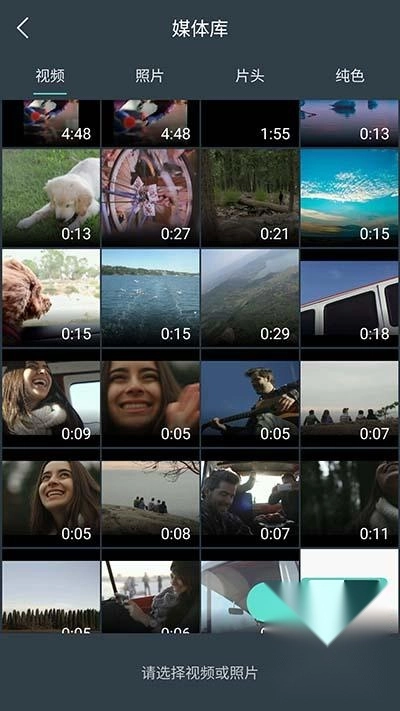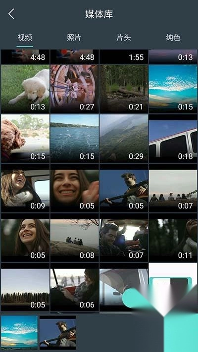 点击界面上的“导入视频”按钮,你可以看到所有的文件被分成了四类:视频、照片、片头和纯色。