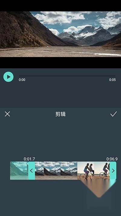 剪辑:点击“剪辑”图标进入剪辑界面,你可以通过调整视频的起始位置保留需要的片段。如果你需要截取中间的多个片段,请先进入“分割”界面将视频分割成多个片段。