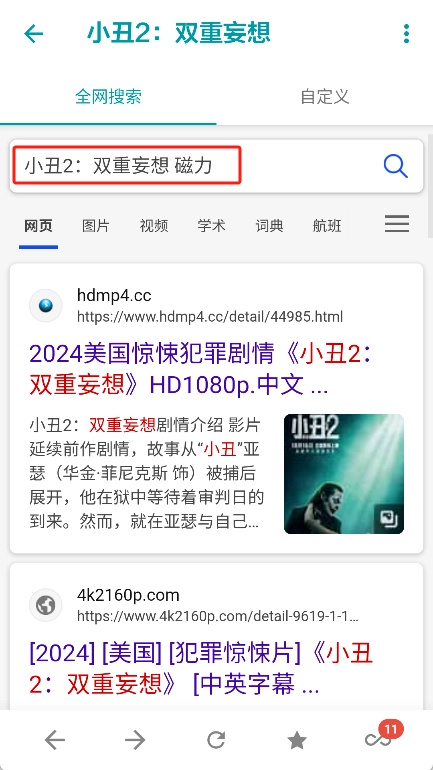 要是在搜索源里没找到想要的资源,用户可以在首页搜索栏输入关键词,然后点击第2到4个搜索结果,借助浏览器进一步查找,也能直接输入网址来精准搜索。