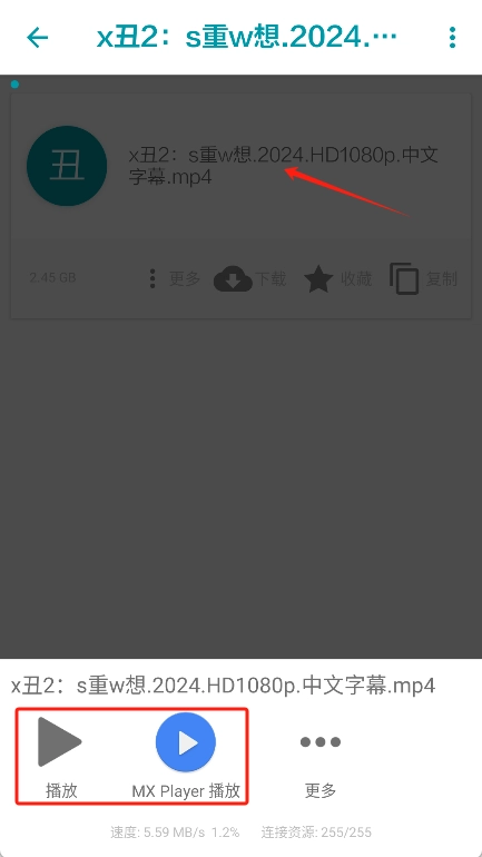 3、然后点击链接进入页面,可以直接点击名称进行在线观看,还可选择MX Player播放器。