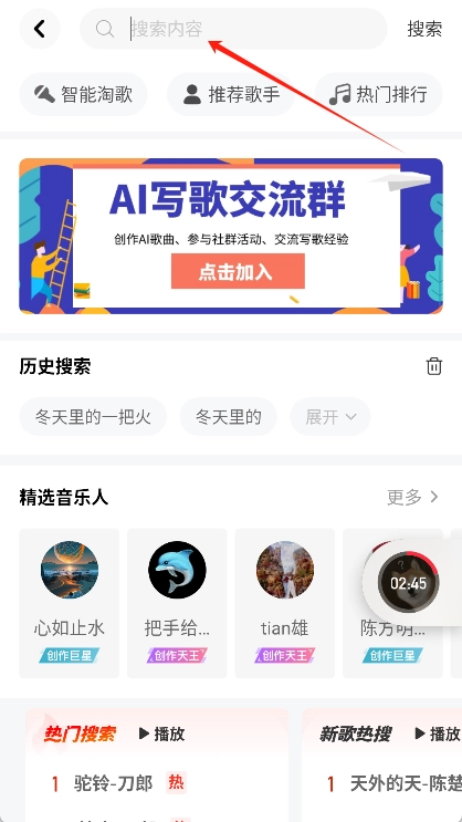 3、也可以点击右上角的搜索图标,在线搜索想要设置为铃声的歌曲名称。