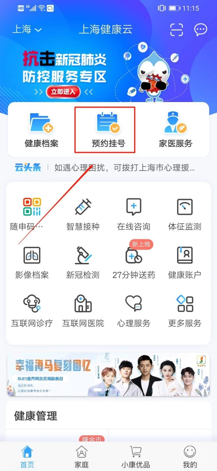 第三步:然后点击页面中出现的“预约挂号”;