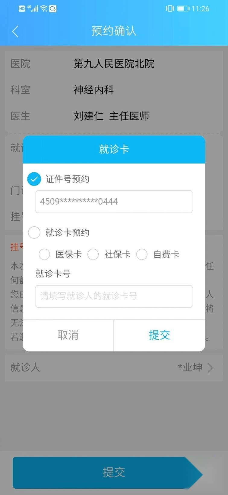 第九步:然后完善“就诊卡”即可预约成功。