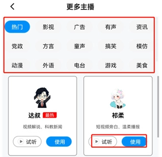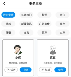 2. 选择主播声音进行语音播报。