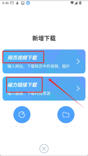 3、这里给大家提供了两种资源方式,一种是网页视频(输入网址直接网页中的视频和图片)、一种是磁力链接(输入链接链接对应的资源)
