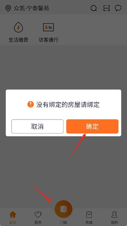 4、同时还提供了手机门禁钥匙功能,用户需要点击底部导航栏中的门禁,在弹窗中点击“确定”。