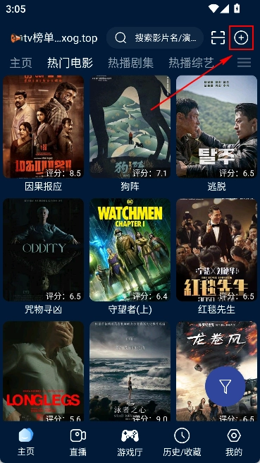 1. 安装好影视仓后,打开软件,点击右上角的“+”号按钮。