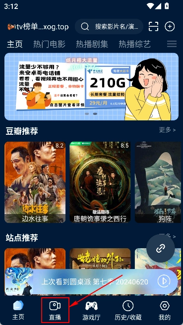 想要用影视仓看电视节目也是需要先配置,配置成功后,点击底部直播