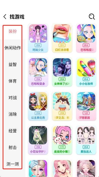 2、随即打开应用,在找游戏页面中可以通过分类浏览不同种类的游戏,如休闲、动作等。