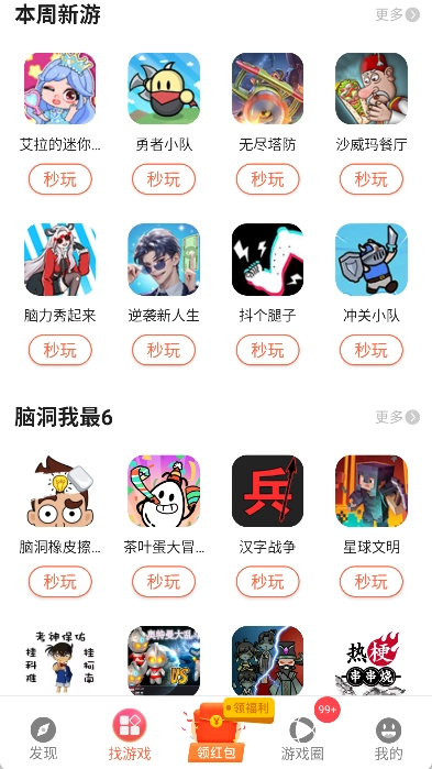 4、找到感兴趣的游戏后点击游戏图标右边的“秒玩”即可开始游戏,无需玩家安装。