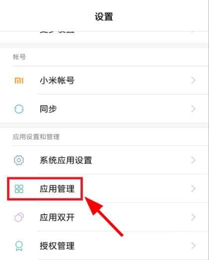2、进入设置页面后,往下滑动页面,点击【应用管理】。