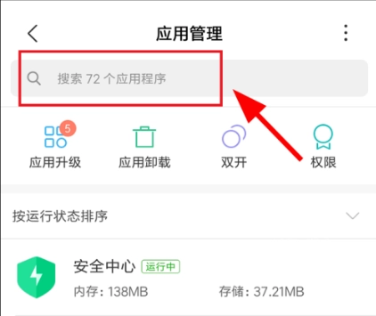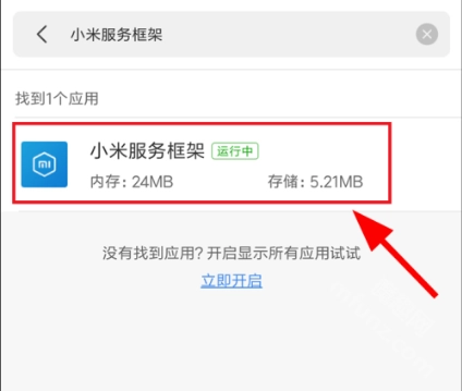 3、在应用管理页面,点击上面的搜索栏,输入【小米服务框架】再进行搜索。