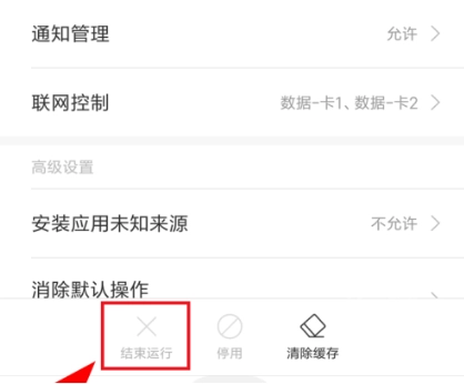 7、完成后,页面下方“结束运行“就会显示灰色,这样小米服务框架已经成功关闭。