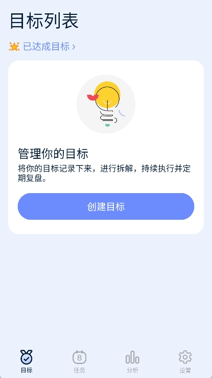 2、然后点击“创建任务”选项将大目标分解为每日可以执行的行动。