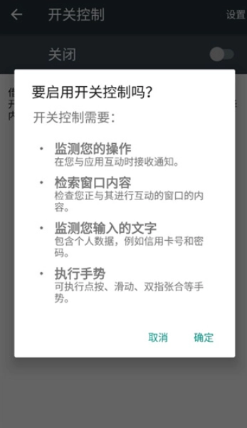 5、配置开关控制:点击进入“开关控制”,开启此功能后运动障碍人士可以使用一个或多个开关来控制手机和平板电脑。