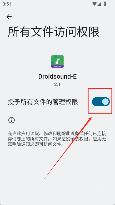 1、首先在魔趣网下载并安装droidsound-e安卓版,打开软件后需要授予文件权限