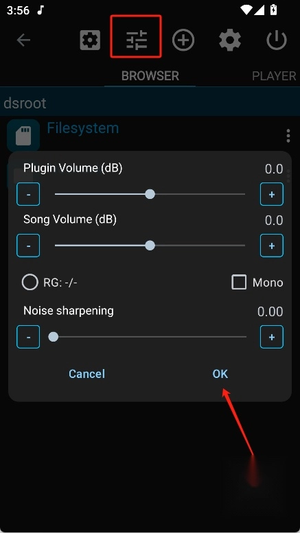 5、如果想要调节播放器的音量等参数可点击首页最上面“三横线”,设置好之后点击“OK”即可