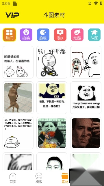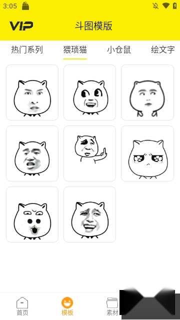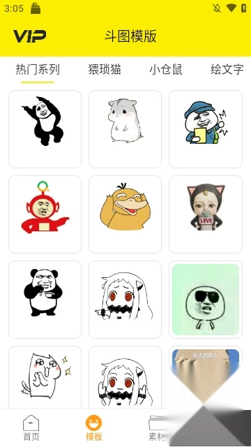 3、首页提供各种类型的表情包模板,你可以选择一个你喜欢的模板作为基础,然后在此基础上进行修改和创作。