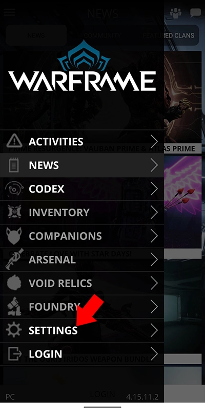 2、在打开的侧拉菜单中,选择Settings选项。