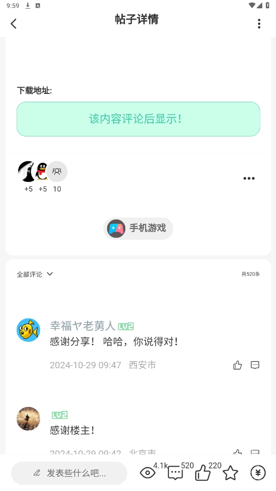 5、找到游戏后即可点击帖子进入,发布评论,游戏资源了