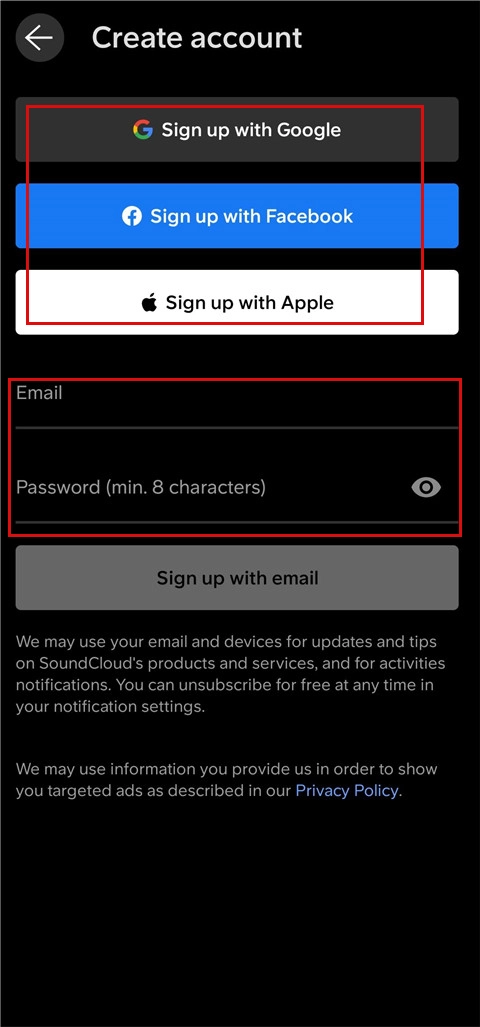 2、输入邮箱账号和密码,点击sign up with email