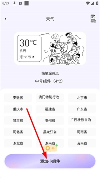 4、进入组件详情页面后,点击“添加小组件”按钮,即可完成天气小组件的添加流程。