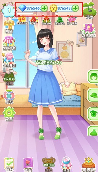 3、这里小编选的是魔法花园换装,能看到已经改成了大量金币和大量钻石,接着点击最下方的就可以了;