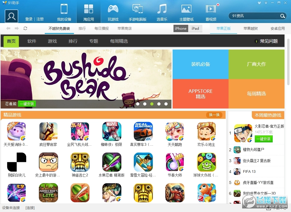 把ipad、iphone这类设备通过数据线连接到电脑,接着打开91助手。
